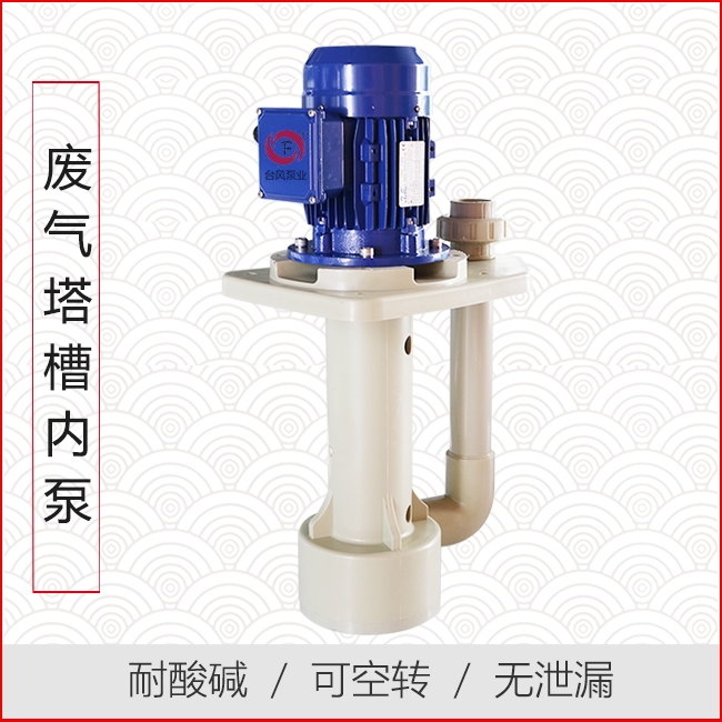 立式耐空转化工泵型号厂家价格选型,台风泵业主要生产槽内立式耐空转化工泵和槽外立式耐空转化工泵。主要应用于废气处理行业,主要涉及脱硫塔、洗涤塔、除臭塔、净化塔、吸收塔、酸雾塔等液下喷淋、循环使用。也可适用于多种废气处理塔设备,已经获得废气处理行业认可。其采用槽内 槽外安装方式,具有耐酸碱,无泄漏,大流量,高扬程等特点。性能可靠。...